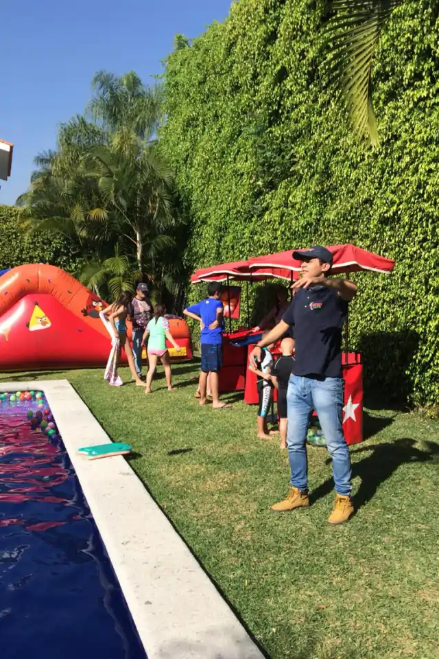 Llevamos todo a tu evento: carpas, juegos, barras o banquetes. Tú solo disfruta, nosotros operamos.Staff profesional y uniformado